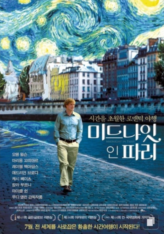 우디 앨런의 영화 레퍼토리의 중심에는 매혹적인 걸작 "미드나잇 인 파리"가 자리잡고 있습니다. 빛의 도시 파리를 배경으로 한 이 영화는 향수와 환상의 시네마틱 조화로 나타나 시간의 경계를 뛰어넘는 서사를 엮습니다. 다리우스 콘지 촬영 감독의 렌즈로 포착된 매혹적인 파리 거리를 통해 관객들은 시각적인 여행을 시작합니다. 따뜻한 황금빛 빛으로 가득 찬 이 영화의 오프닝 장면은 관객들을 캐릭터이자 캔버스 역할을 하는 도시 파리로 손짓합니다. 에펠탑과 같은 파리의 상징적인 랜드마크부터 매력적인 카페들로 장식된 조약돌 거리까지 모든 프레임은 세심하게 제작된 장면으로 관객들을 파리 미학의 화려함와 찬란함 속으로 빠져들게 합니다. 오웬 윌슨이 연기한 주인공이 파리의 거리를 거닐면서 도시 자체가 시간여행 장치가 됩니다. 기발한 악보와 어우러져 향수를 불러일으키는 영화의 분위기는 관객들에게 한번도 경험해보지 못 한 한 시대에 대한 갈망을 불러일으킵니다. 광란의 20년대에 대한 탐구와 과거의 문학적, 예술적 아이콘이었던 역사적 인물들과의 만남은 현실과 지나간 시대의 매력 사이의 경계를 모호하게 만드는 독특한 분위기를 만들어냅니다. '미드나잇 인 파리'의 중심에는 도시 풍경만큼이나 매력적이고 개성강한 캐릭터들이 등장합니다. 윌슨의 캐릭터와 마리옹 꼬띠아르의 수수께끼 같은 재치 있는 농담부터 어니스트 헤밍웨이, F. 스콧 피츠제럴드와 같은 역사적 인물들과의 기이한 교류에 이르기까지 다양한 캐릭터는 영화의 대표적인 개성이 됩니다. 앨런의 특유의 재치가 배어 있는 대사는 각각의 캐릭터에 깊이를 더해주며 영화 여행 내내 관객을 사로잡습니다.